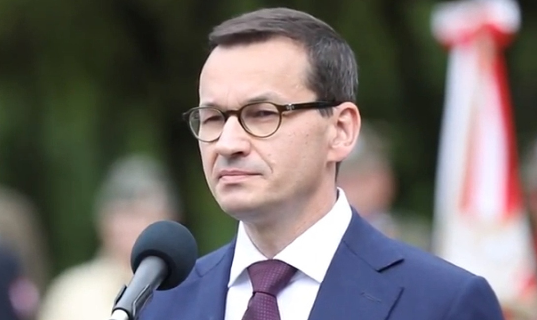 Mateusz Morawiecki podczas uroczystości na Skwerze Wołyńskim