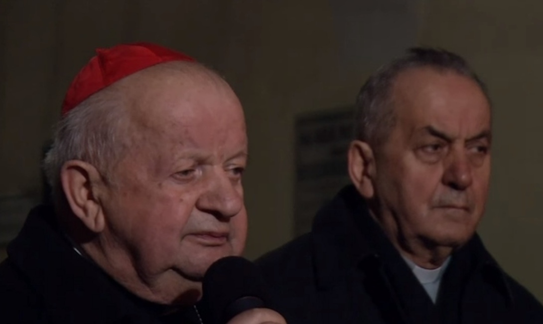 Kardynał Stanisław Dziwisz pod Oknem Papieskim o 21.37