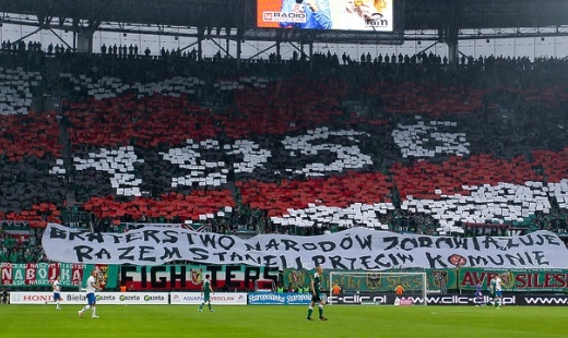 Śląsk Wrocław - Lech Poznań: oprawa 1956 - braterstwo narodów zobowiązuje...