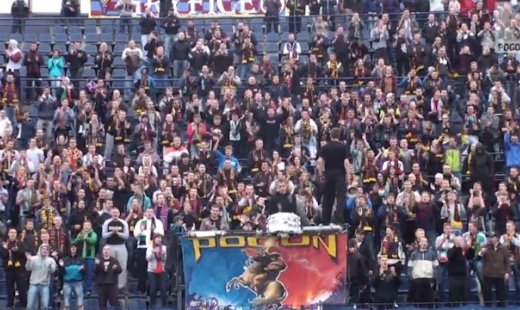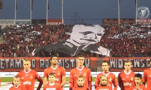 Kibice Widzewa podczas meczu z Legią Warszawa