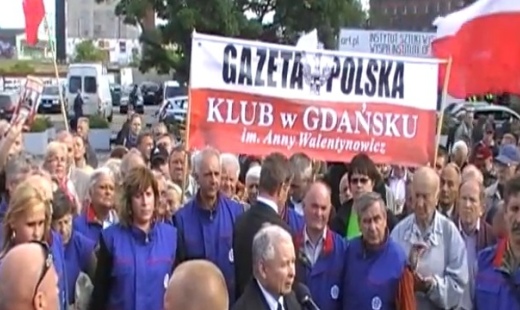 J. Kaczyński pod Pomnikiem Poległych Stoczniowców